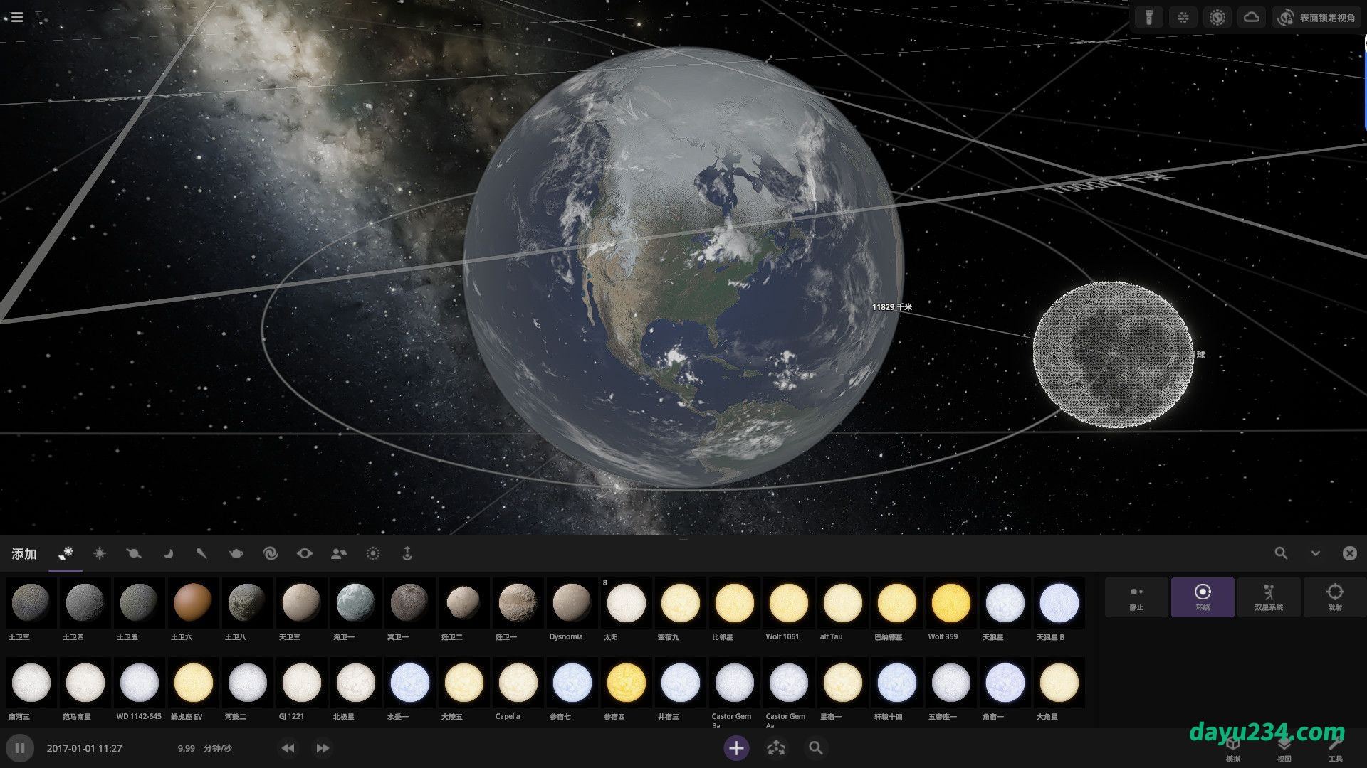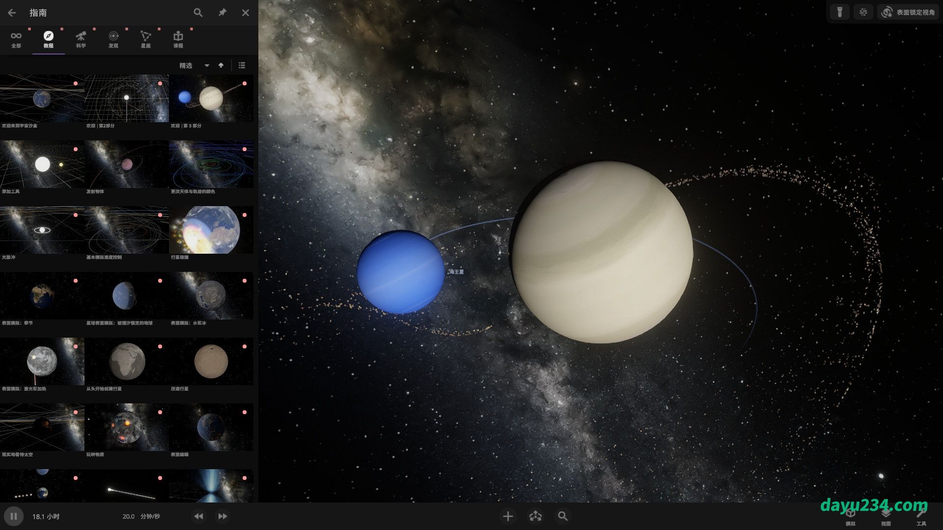 1、游戏玩法类似物理沙盘游戏,但这次模拟的是浩瀚的宇宙。游戏为玩家提供一个太阳系模型,在那里可以看到恒尾、行星、卫星的运作方式。